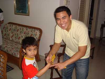 Inilah gambar yang paling mahal sekali…macam penyerahan mock cheque,hihihi. Bukan senang nak dapat angpau dari uncle Ilan (abah’s cousin).